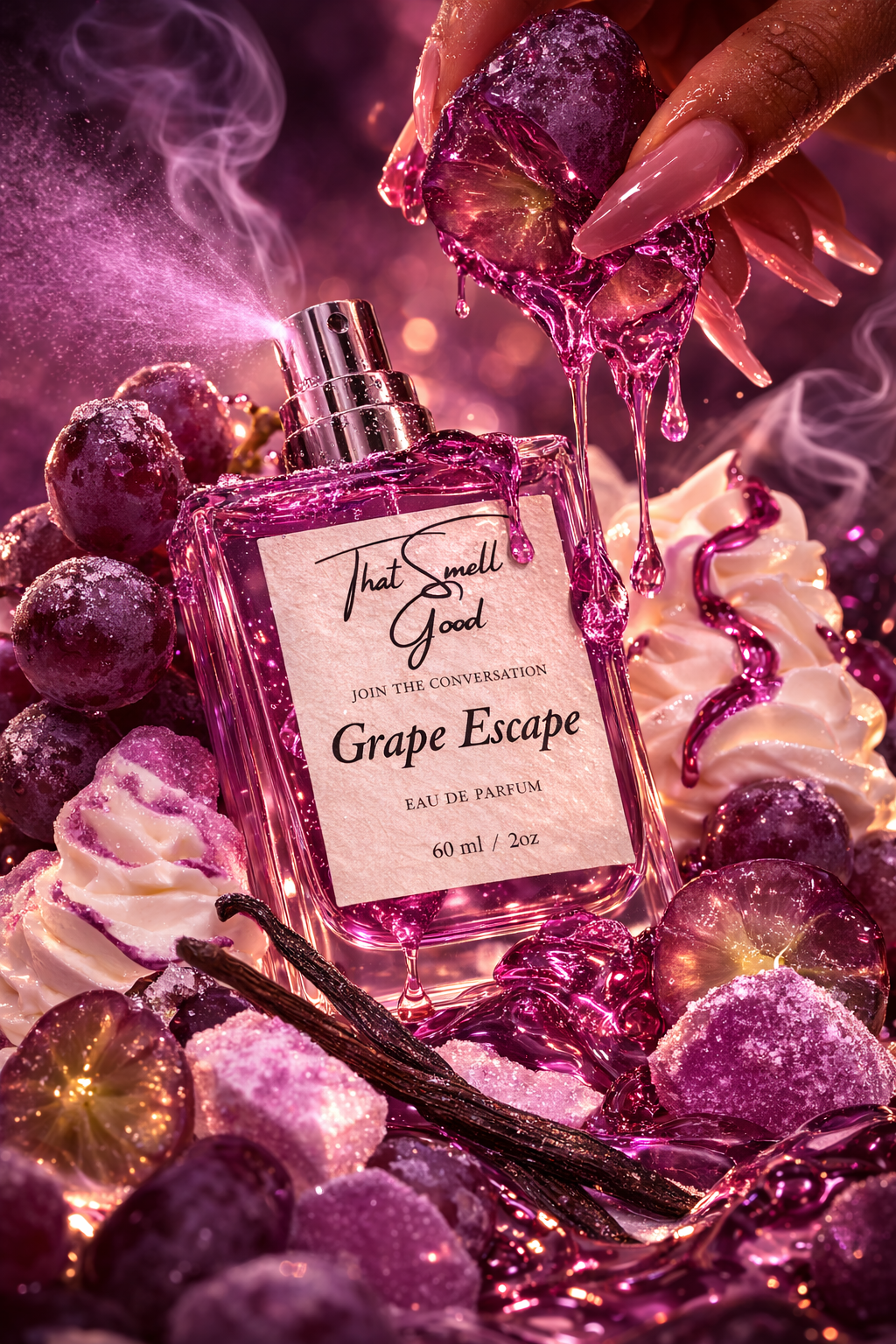 A juicy burst of sweet grapes wrapped in sparkling sugar and creamy gourmand decadence. One spray and you’ll understand why it’s a customer obsession.